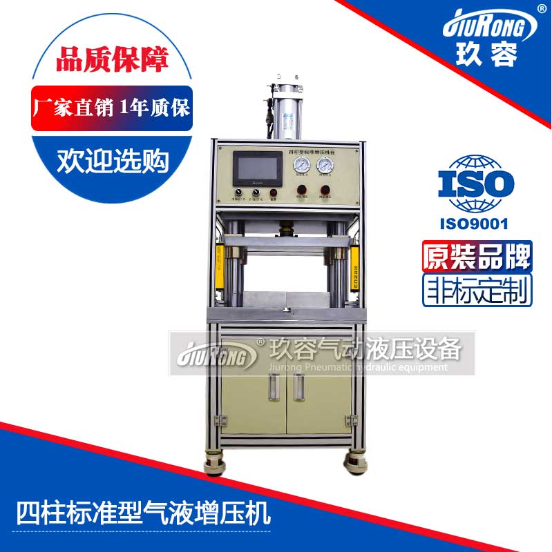 JRI四柱標準型氣液增壓機所有控制電路都集成在下面的控制箱面板上。采用四柱式開放空間設計,搭配了安全光柵,四根高剛性導柱確保精密導向,預壓、增壓壓力均可精確調整,可選手動、自動控制等等。產品在裝配、沖壓、打印、成型、擠壓、沖孔、彎曲、鍛壓、壓入、印字、鉚合、修毛邊、切斷等工作場合得到廣泛應用。